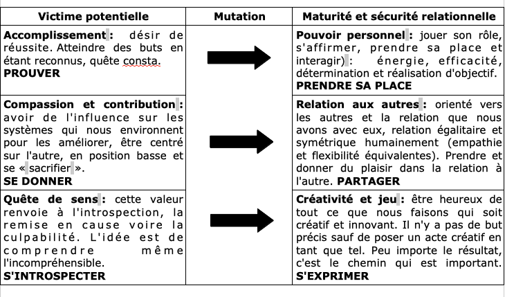 Du point de vue des valeurs, une mutation peut être accompagnée :